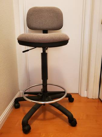 Tall fully adjustable with foot rest ring to use at standing desk or high table. Excellent condition. Located in American Canyon. Photos show measurements.
