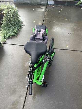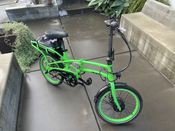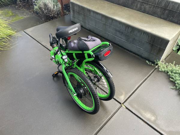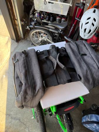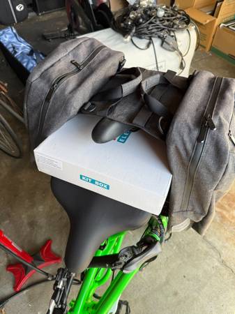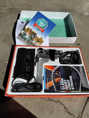 The bike comes with removable panniers, an extra saddle, and all original accessories.