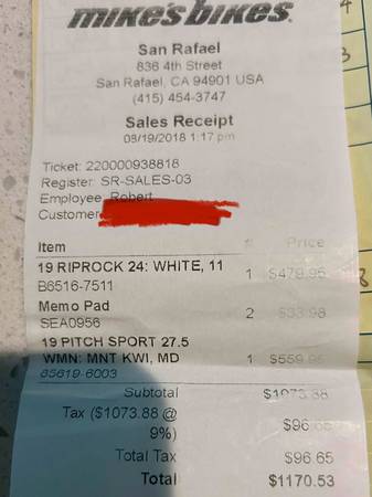 Used 2019 Specialized Riprock 24” Kids Mountain Bike originally purchased in August 2018 for $479+tax at Mikes Bike in San Rafael.