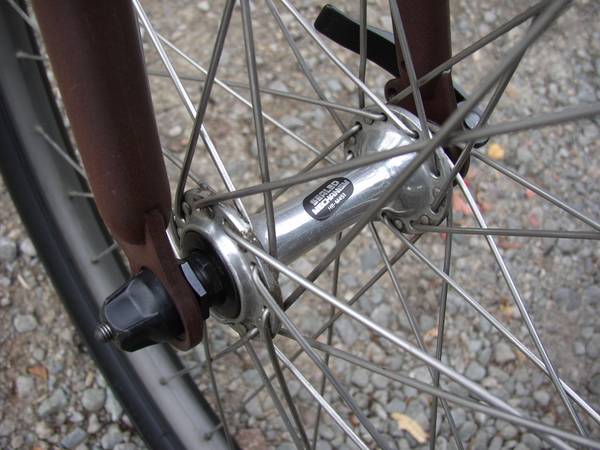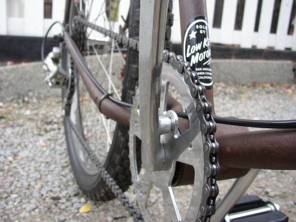 rear cantilever bosses were brazed on, and a Cro-Mo MTB fork was installed, using Shimano cantilever brakes...