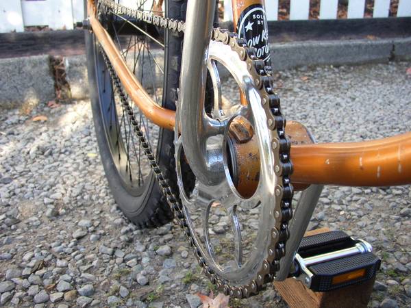 completely rebuilt with Schwinn bottom bracket, headset, crank, black alloy wheels with stainless spokes, reproduction Carlisle Knobby style tires, tubes, chain, grips etc...