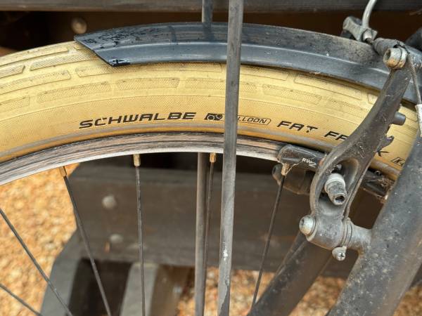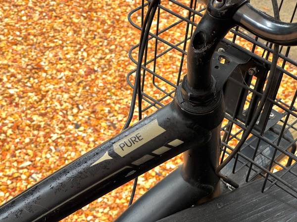 Trek's Pure is a smooth-riding, laid-back machine that is perfect for jaunts around the city or a cruise down the boardwalk. This bike features a lightweight aluminium frame with Trek's "Feet First" pealing stance for stability. SRAM and Shimano components team up to handle drivetrain tasks, and parts from Tektro and Bontrager finish the bike. This bike is in good condition and rides well. It has Fat Frank cream colored tires and a sturdy basket. The seat is original and has some tears and worn spots but usable. It is lightweight and a good around-town bike.