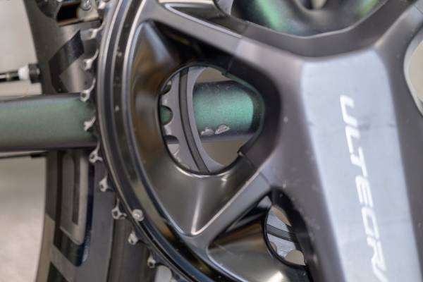 Condition: Minor cosmetic marring on the chainstay from a dropped chain. Cosmetic scrape on the left shifter hood — no functional or structural damage. Both pictured.