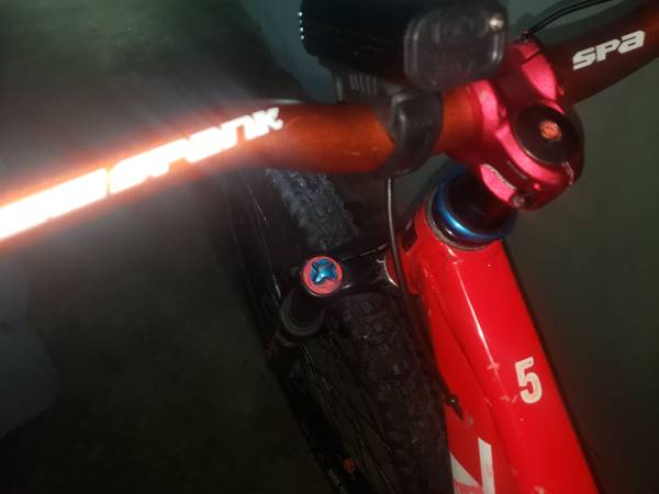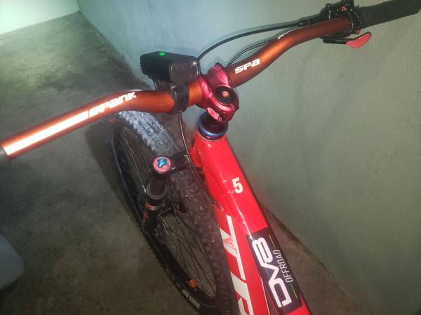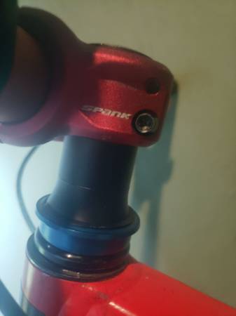 Hollow tech bottom bracket fox 120 range forks spank 35ml stem 820 spank handlebars maxis tires hydrologic disc brakes single chain ring drop post seat bar Ozark trail pedals race face cranks...