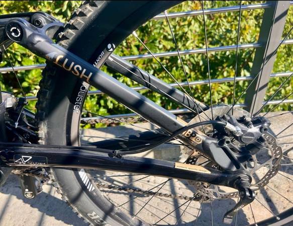 Black Trek lush sl mountain bike with FOX fork and Shimano components. Hardly ridden and in superb shape. Needs a new brake pad but otherwise pristine. Priced below blue book value.