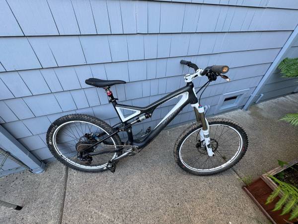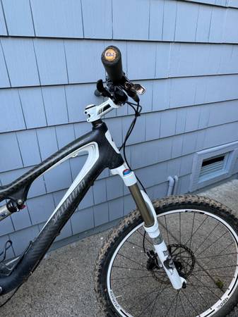 2011 stumpjumper expert carbon made by specialized with elixir brakes 180 mm rotors 1 by 11 cog set and Shram shifters. perfect bike for beginners large size frame fox suspension in front and rear. 140 mm rear and 160 front. Adjustable seat post (had dropper but took off because it broke)