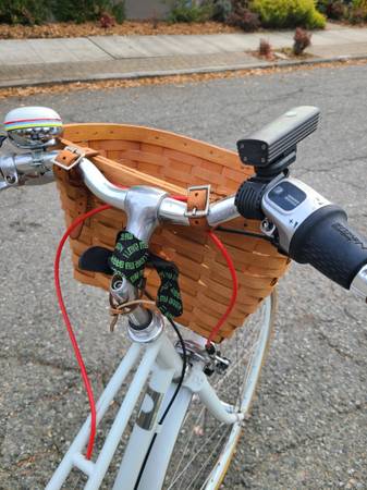 Stylish small/medium white Public bicycle with a front basket and nice Shimano Nexus 7 speed internal derailer. This was $699 new and in very nice shape.