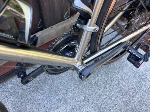 Merlin Titanium road bike, Tom Kellogg design. 55cm or Medium road bike size. Immaculate shape and even better ride! Just cleaned and went through the bike, installed new Kool Stop brake pads. Bike is ready to ride, needs nothing. Hate to even list it, one of my favorite bikes I have ever touched... but I am selling off the collection to get down to a one/two bike solution.