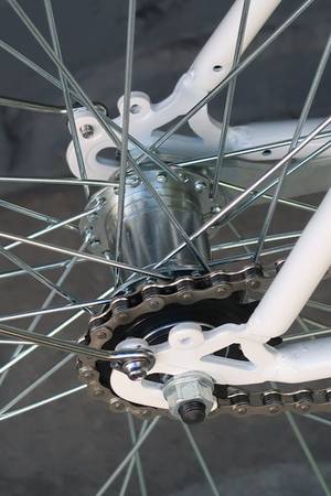 Brand new Bicycle Czar City Masher complete with fenders, bolt on wheeel lock with 3 keys and integrated cable (not shown), Steel frame and fork with 700c dual wall rims, 36 stainless steel spokes and kenda quest 700 x 25c tires. Forged aluminum cranks, aluminum touring pedal, aluminum seat post and riser uproght stem with swept back aluminum handle bars. Bike weighs 29 pounds so not super light but not a pig. The one in the pictures is size large and will fit riders 5'11-6'3". Also available in small medium and large. Made to the same specifications as the Black and Tan single speed sold by State Bicycle Company for $439.99 plus shipping and assembly. Please text show contact info