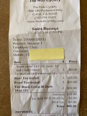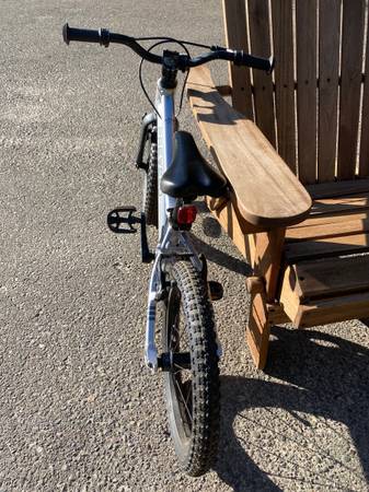 Silver Prevelo kids bike. Recently spent $83 for new tires. Weight: 13.9 pounds without pedals