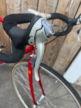 Saddle, pump, and stainless King Cages not included. I need these items for another bicycle. Included are all the original bits that came with the bike when I bought it in 1999 from a buddy. Down tube shifters (like new), NOS brake levers, size 44 shoes, two water bottles, one bottle cage, pedals, and the stem. Don't have the handlbar. Must have lost it in one of my too many moves.
