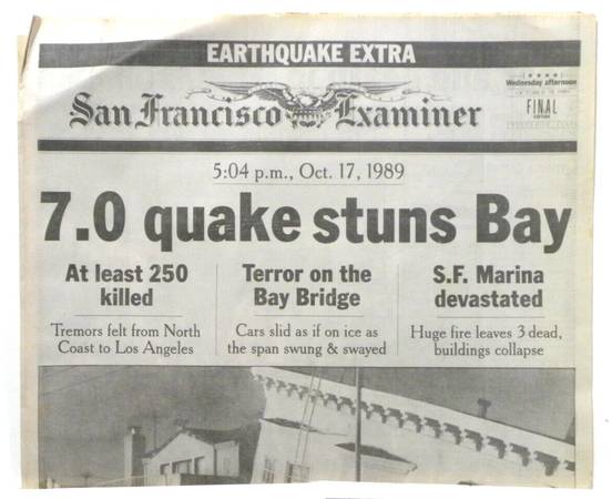 San Francisco Examiner "7.0 Quake Stuns Bay" Loma Prieta Earthquake Oct 17, 1989 - Section A (15) pages