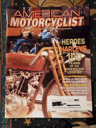 June 2003 American Motorcyclist Magazine, Hero Harleys 100 Years Featuring Heroes & Harleys: 100 Years of an American Legend. Porch pickup available.