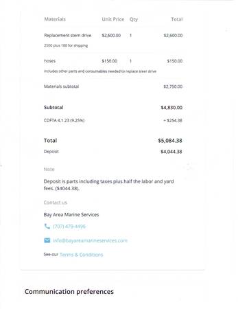 1989 Wellcraft Cuddy cabin. I just had the motor serviced and 100% new outdrive installed. It comes with all of the necessities (dock lines, anchor, porto potty, Bimi top and Delta canvas etc. The trailer is a like new (no rust) double axel. I am selling it because I am turning 82 and it is more boat that can handle. I am asking 4500.00 or best offer. Possible trade for an older sportscar.