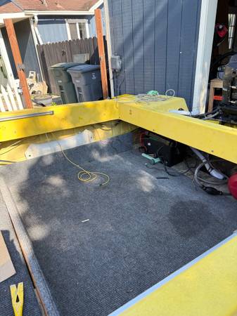 Boat and trailer registered with 2025 mussel stickers. The engine runs strong, felt a soft spot so removed floor. No longer interested in fixing but i do have the plywood, new in box roll of fiberglass and nex sealed gallon of resin to complete it.