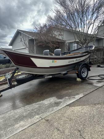 1997 WillieBoats 17'x54"drift boat. Original owner. New interior-beautiful. Sawyer oars (3). Baker trailer. Propane heater. Rear removable seat. Stern anchor & front anchor mount. Rain top. All...