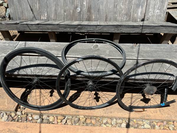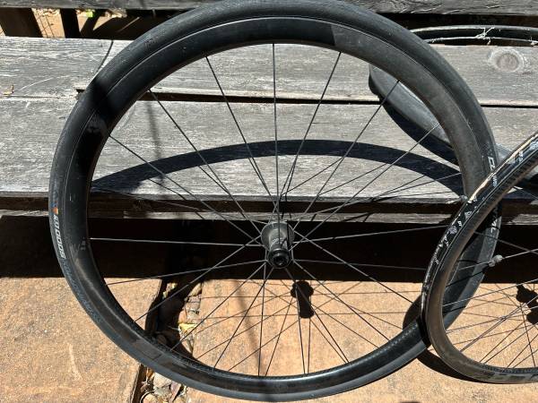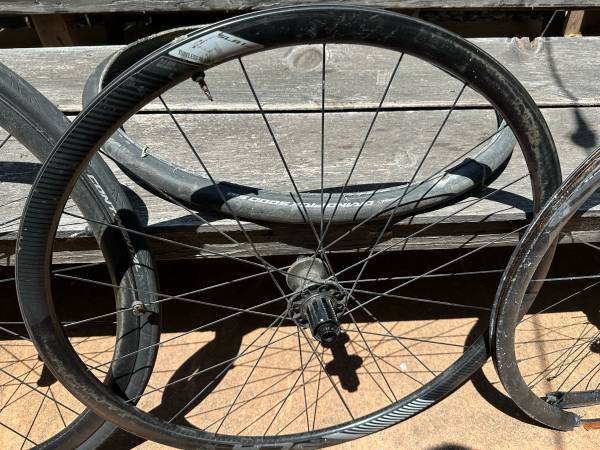 Front rim original 2018 Advanced SL1 Giant. Rear rim replaced from small crack. New rear wheel destroyed after hit by car (good for cog and hub)… Continental GP5000 STR almost new. Tubeless set up....
