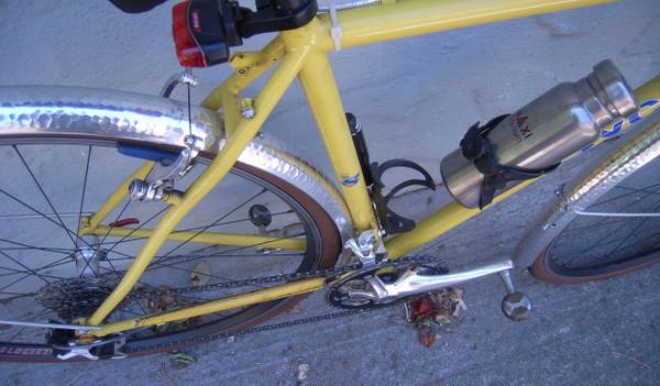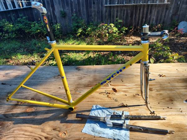 pictures show it built but its not built now so dont expect to test ride. Fits 33mm with 45mm fenders or 38mm sans fenders. color is french's mustard. theres a small dent on one of the chainstays. Rynolds 853 main triangle and mix of tubes in the rear. original receipt included. i did a mock up in BGC to show the geometry with the 389ac fork. coated with framesaver from day 1.
