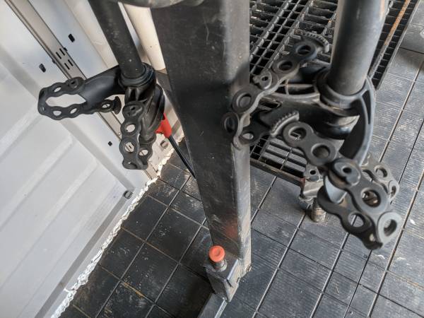 The rack tilts back so the back of the car can be opened when in use. Has additional deadlock cable feature which allows being able to lock bikes to the hitch. Includes both original keys. Keywords:...