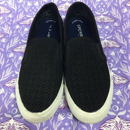 Selling a pair of Sperry Women's Slip On Shoes in good condition no rips just some staining on the white part of the soles and soles have some wear but still some good life in the shoes. Size is 7 and color is Black & White. If you have any questions or interested email me with your contact info and I will get back to you. Available for shipping if needed.