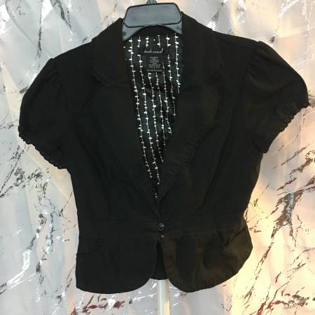 Selling a used Stoosh Casual Women's Dress Coat in good condition no rips or stains. Coat features 2 small pockets at the waist along with a black lace trim around collar and shoulder. Made of 97% cotton and 3 % Spandex for the shell and the inner Lining is made of 100% polyester and is machine washable. Size is Large and color is black. If you have any questions or interested email me with your contact info and I will get back to you. Available for shipping if needed.
