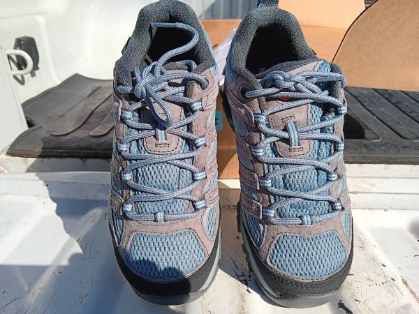 NEW IN BOX Merrell Moab 3 Waterproof Hiking Shoes - Women's Sz. 6.5. Pigskin leather and mesh uppers with waterproof membranes have protective rubber toe caps and bellows tongues to keep out moisture and debris. Air Cushion in the heels absorbs shock and adds stability while Vibram TC5+ non marking outsoles balance grip and traction with durability and flexibility. *** Original Retail $140.00 *** LESS THAN 1/2 PRICE!! ***