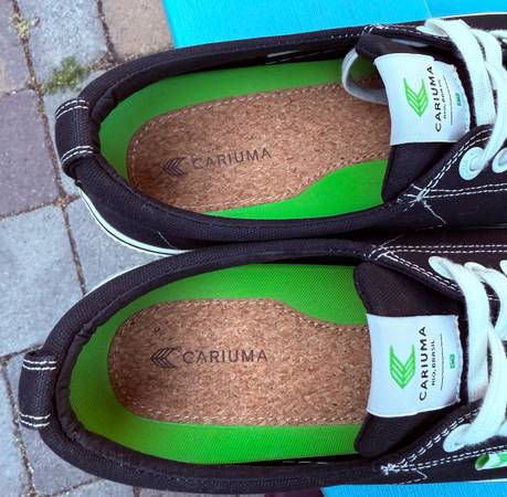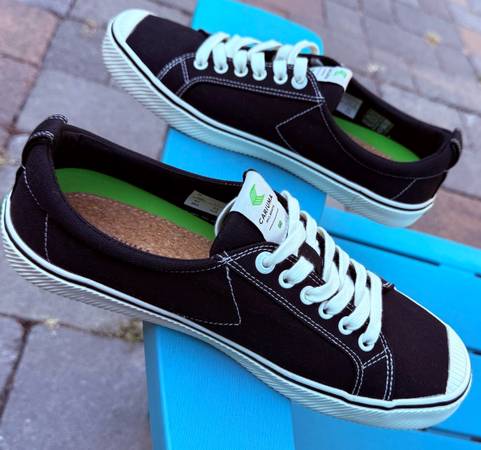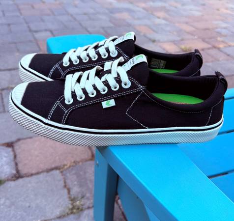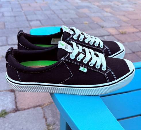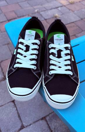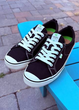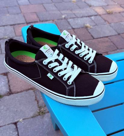 Cariuma OCA Low Black Canvas Sneaker, men's 10, women's 11.5, barely worn! Drawing inspiration from retro athletic styles - the OCA Low Black is simple and low-key, making it the perfect everyday sneaker. Handcrafted using a robust canvas, the OCA Low Canvas exists at the intersection of functionality and style. With our 100% vegan insoles made from organic mamona oil and cork, it ensures optimal comfort and fit. The OCA Low boast a unique cap toe design and a fully-stitched lightweight outsole for a durable, long-lasting shoe. Finishing our OCA Low sneakers with debossed metal aglets.