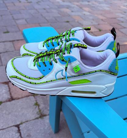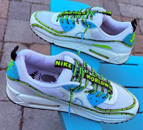 Part of the Worldwide Pack, the Air Max 90 SE Worldwide Pack - Blue Fury Volt is inspired by the unifying power of sports. Built with mesh, the upper is overlaid by leather, with Blue Fury and Volt highlighting the TPU elements. 'Nike Worldwide' branding emerges throughout the construction, while underfoot, the midsole houses visible Max Air in the heel for cushioning. A waffle rubber outsole provides traction.