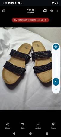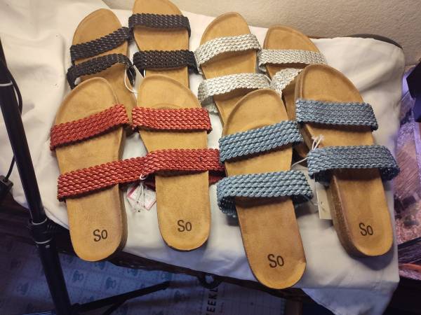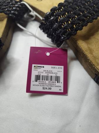 Kohls Sandal 4 Size L 9/10, assorted colors black, red blue and silver, brand new with tags. I wiped them down there'sstill a little dust from being in storage other then that they good.