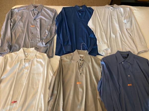 Men’s dress shirts freshly cleaned and pressed. All are size 16-16 1/2 neck, arm length 34/35. All in great condition, $10 cash for each shirt or best offer.