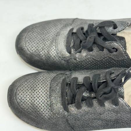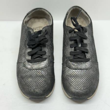 These Dansko Women's size 40 US 9.5-10 Leather Christina Sneakers Shoes in Metallic Black are in good pre owned condition, with some signs of wear but still beautiful shoes! They are black metallic color with leather upper and fabric lining.