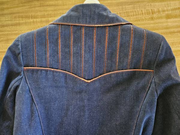 BLUE DENIM WITH LEATHER TRIM JACKET QUILTED LINING SIZE SMALL NEW CONDITION $20.00 CASH