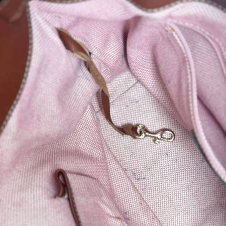 Overall exterior looks great – canvas is clean and color is still rich. Leather trim also looks very nice with only mild surface wear on the handles and some faint cosmetic scratches on the gold hardware (normal from use).