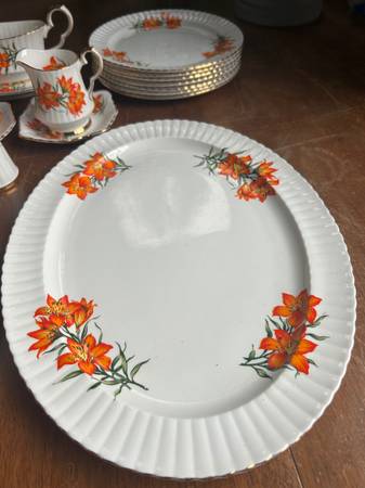 55 Piece Royal Windsor Bone China Prairie Lily Serving Set -...