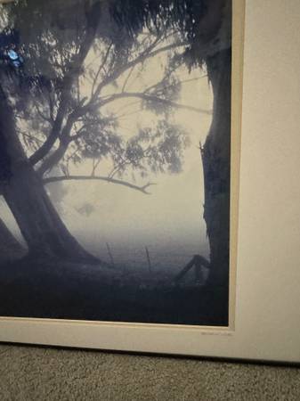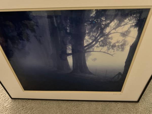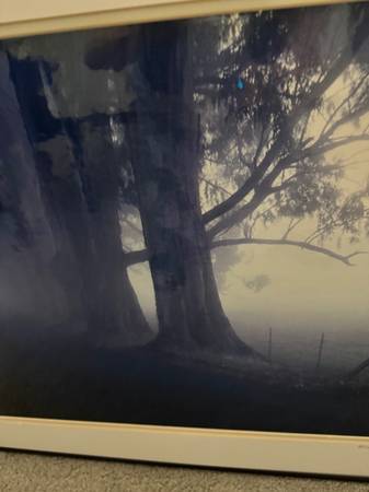 *** "EUCALYPTUS IN FOG " SONOMA COUNTY AMAZING LANDSCAPE *** BEAUTIFULLY FRAMED DARK FOREST ARTWORK SONOMA COUNTY W 28, H 22