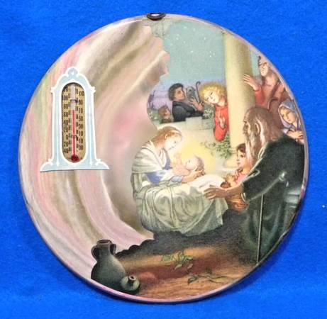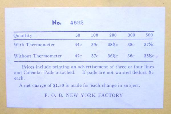 Vintage 1937 Chalkware Thermometer - Salesman's Sampler Wall mount - Thermometer works - fatigued box