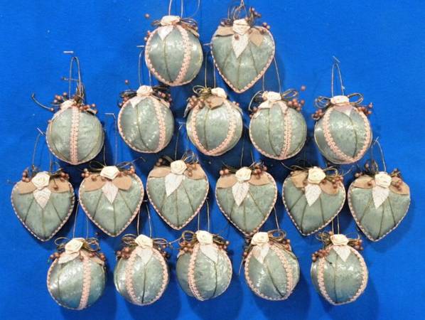 Louis Nichole Christmas Ornaments Kurt S Adler New York 18 Ornaments 7 hearts (4 inch) 11 balls (3 inch)