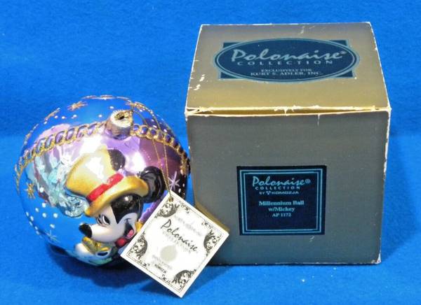 Vintage Kurt S Adler Polonaise Glass Christmas Ornament Mickey Mouse Millennium Ball (4 inch) - original box