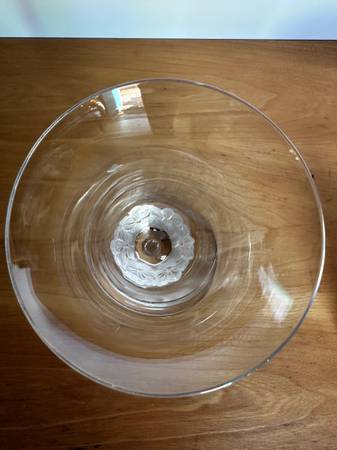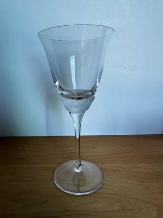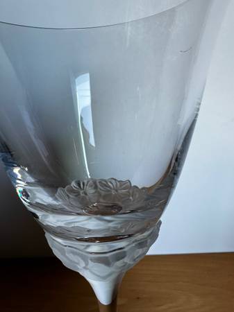 Vintage Lalique style Bohemian 4 crystal wine glasses. Very beautiful shape with opaque glass flower design in excellent condition.