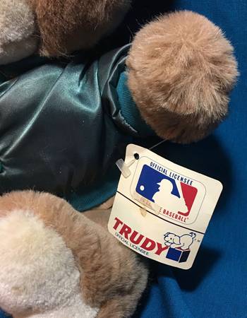 selling a oakland A's 1982 Teddy Bear made by Trudy, bear has a little bit of staining on his feet and jacket has a little faded no rips or holes. still has the original tag from 1982. If you have any questions or interested email me with your contact info and I will get back to you. teddy bear is available for shipping if needed