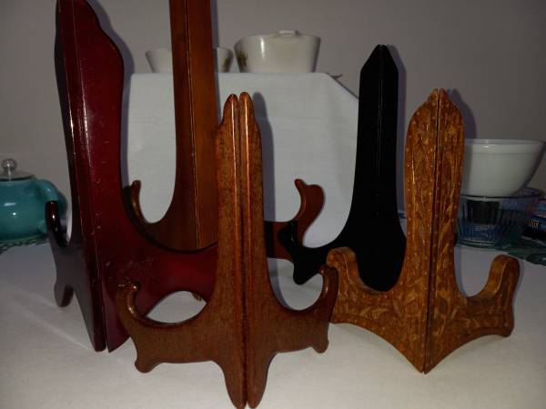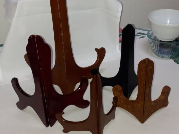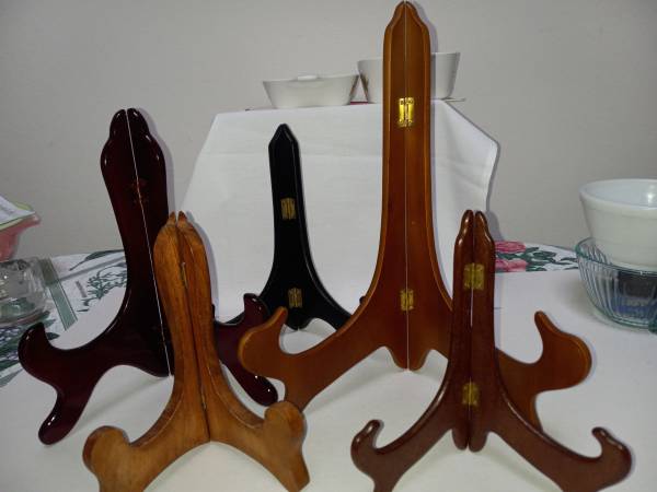 Really solid, nice group of 10 art or plate easels. 10-inch white cast iron easel not shown. _____ _____
