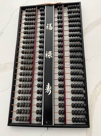 Wooden double abacus. Can hang on the wall, size 22" x 12". Has 21 rods and 294 beads made in the 1970's. Excellent condition. Pick up in east San Rafael.
