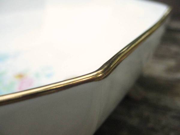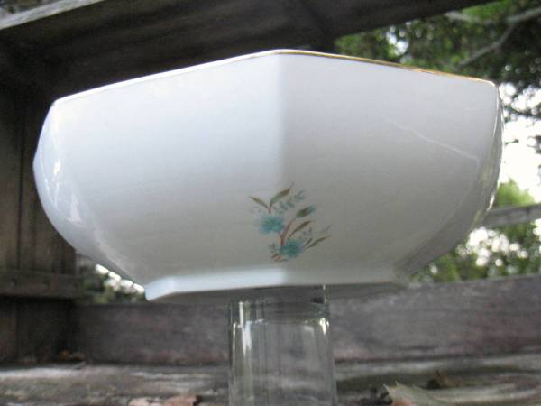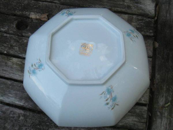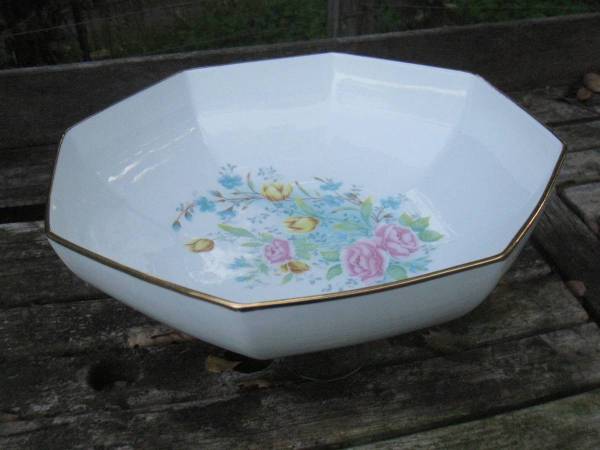 Used - Like New, LIMOGES Octagonal Bowl was purchased in St. Yrieix France - ‘MARQUET Les Palloux’ in gold underglaze on base. It has delicate floral pattern inside bowl w/gold rim trim; base has raised foot. It is approx. 10-1/2”-dia. between opposite facets x 2-1/2” H. It’s available for local pick-up in San Rafael, cash or PayPal/Venmo.