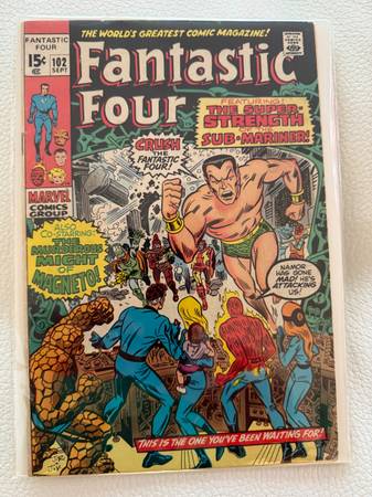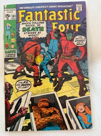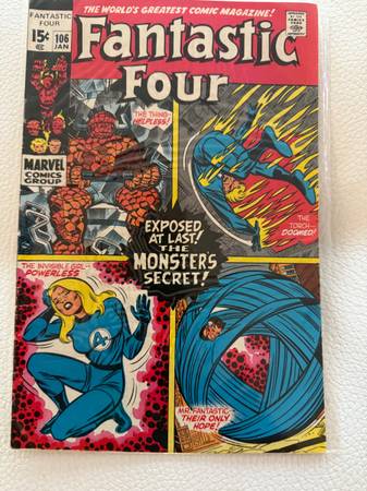 A deep lot of silver age Fantastic Four comics. Included in this lot are #102-108, 113-116, 118, 120, 153, 158-162, 169; 173 and 199. All are minimally in Good condition, though I’m not qualified to grade comics so please review the photos closely and let me know if you have any questions. This is a very good deal with 23 classic comics for one low price. Selling as a lot.