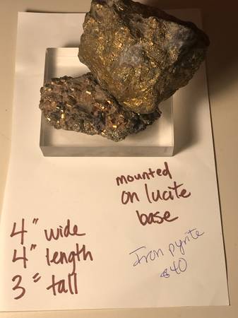 pics 1,2----------Iron Pyrite mounted on lucite $40