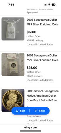 2008 Sacagawea silver enriched .999 fine silver $25 or trade for a different year ? If see post is still available Thank you