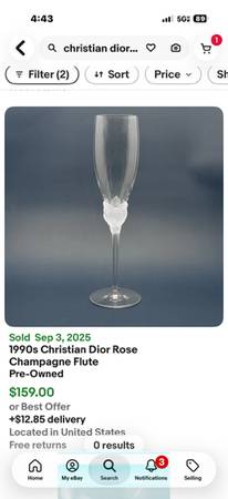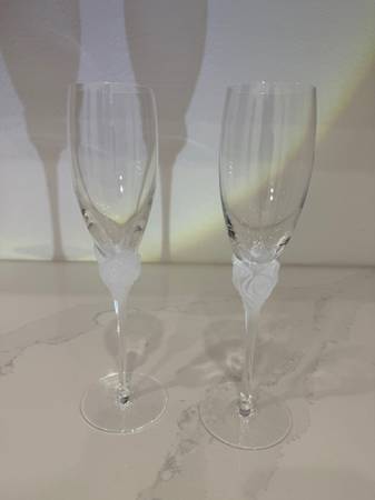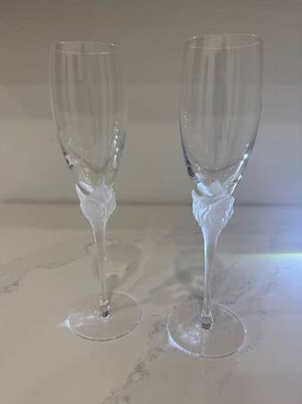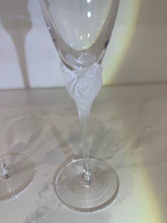 Pair of Beautiful Christian Dior Frosted Rose Crystal Champagne Flutes - Toasting Glasses. These are signed. Perfect for a wedding, new years or anniversary. Great gift. Just 1 SOLD FOR $159, See my...
