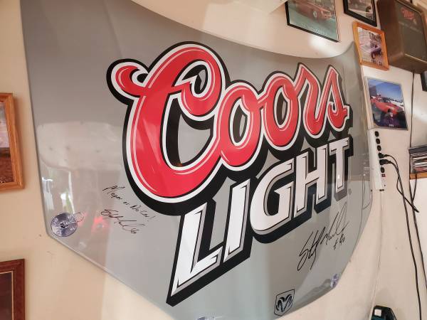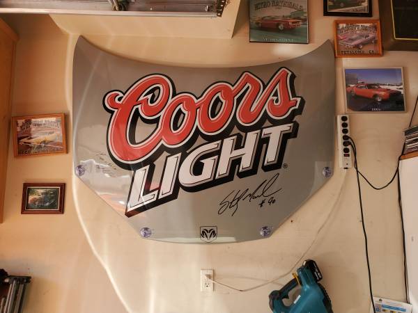 After 20 years of hanging in my garage time to let this one go, full size Coors Light Sterling Marlin promotional hood, Hood is made of plastic and an excellent condition.