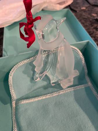 Tiffany & Co. Crystal Glass Ornament Penguin Penguin Ornament. It is in excellent condition, measures approx. 3 1/2" high by 2 1/2" wide