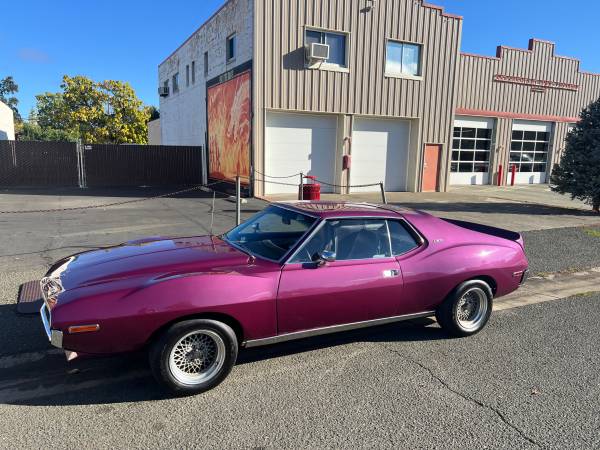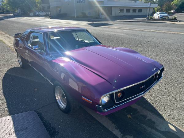 One Owner AMX. Production numbers were 1830 total for 1972. Making this Javelin likely one of one. Ordered D9 Wild Plum with stripes delete. 360 4bbl and a 4 speed. Bucket seat black interior console delete. Go Package with high performance suspension and 140 Speedo and Tach. This car is a time capsule. $42k Solid Offers - Other Cool Hot Rod Trade's Considered?